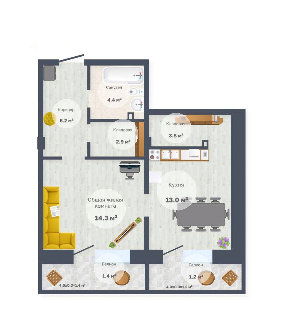 Одна из последних осталась интересная евродвушка в ЖК на Кочеткова 56 площадью 47.2 м2 уже со скидкой!