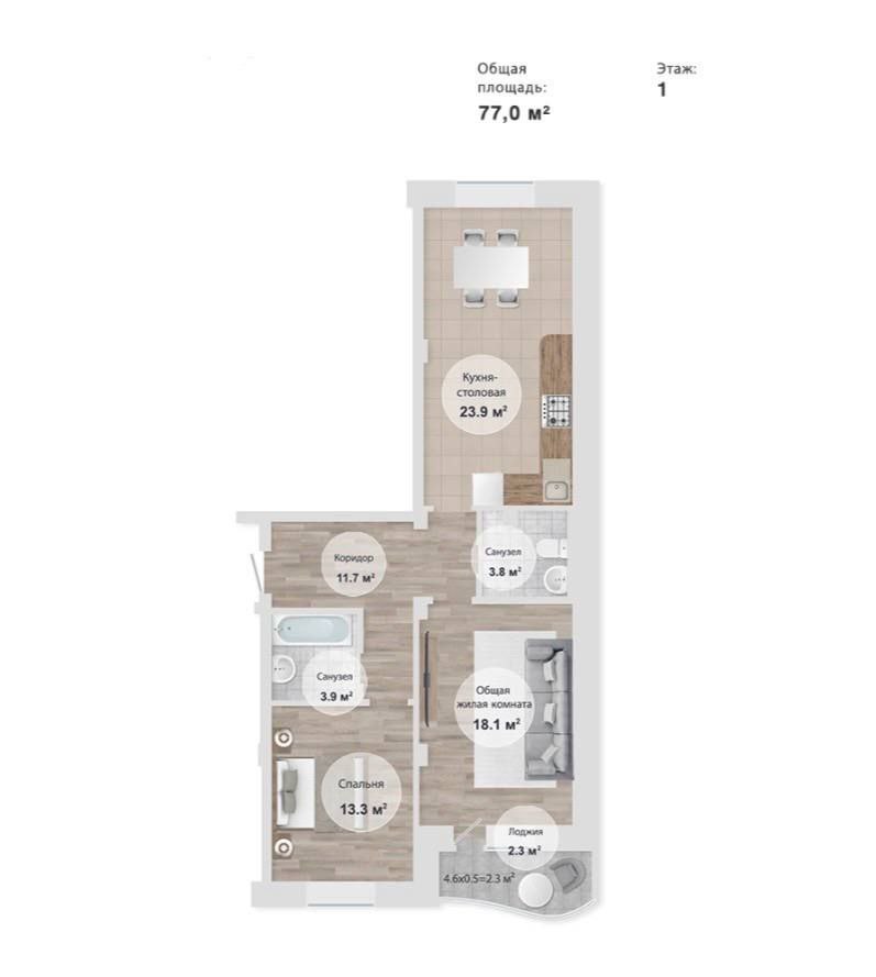 Одна из последних евротрёшек площадью 77 м2 в ЖК «Звёздный» в готовом доме №3 по акции со скидкой всего 150 тр/м2 и со сниженной ставкой от 0.6% годовых на весь срок от Сбербанка